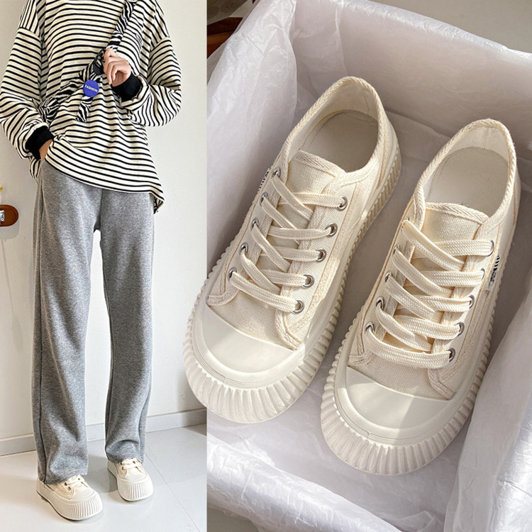 韓国版ins潮の小さい背の厚い底のキャンバスの靴の女性の2024年の春秋の新型の百合のカジュアルな復古の板の靴