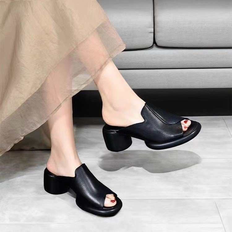 2024夏の新商品の純色の復古風とシンプルな魚の口の露指の冷たいスリッパの女性の一字はスリッパを履いています。