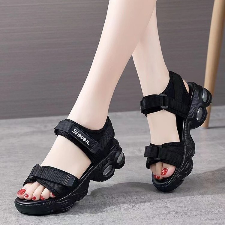 2024年新型夏の厚い底の運動サンダルの女性のマジックテープの柔らかい底の軽やかな学生はレジャーのビーチの靴を合わせます。