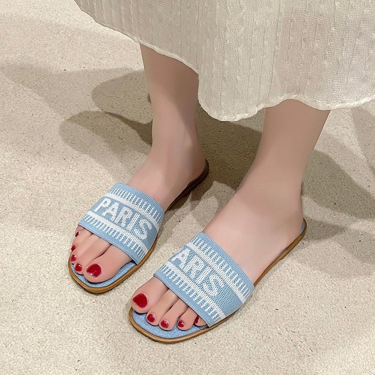 2024夏の欧米風の丸いアルファベットの外国貿易の大きいサイズの1字の平底のサンダルの女性の刺繍の砂浜のサンダル