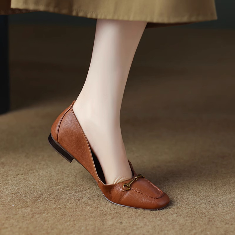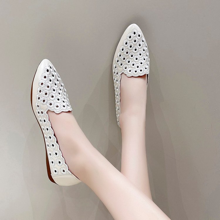 レトロな透かし彫りの先が低いです。2024年春夏の新型ファッションカジュアルな足で怠け者のお母さんの靴を漕いでいます。