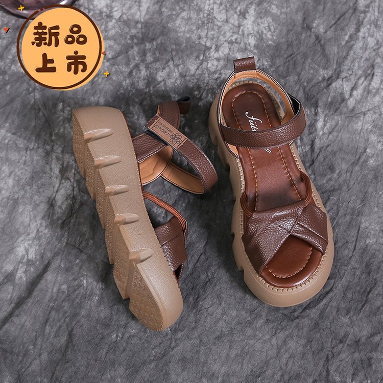 ビスケットの底のサンダルの女性2024年夏の韓国版のファッションの新型の柔らかい底の柔らかい面の魚の口のローマの厚い底のサンダル