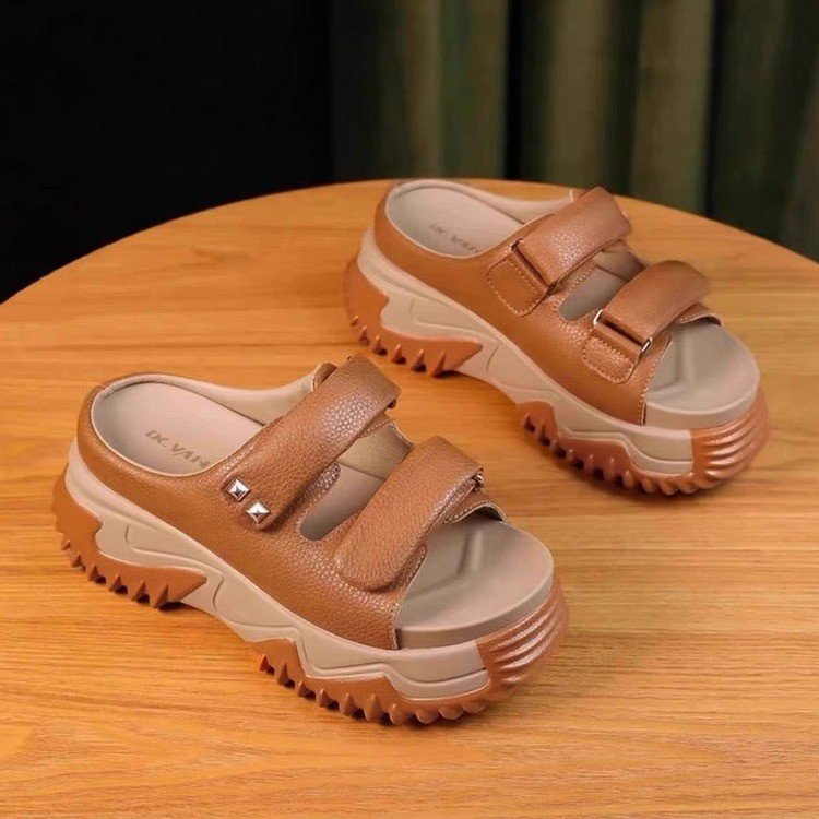 2024夏の新型坂と女靴の爆発物の厚い底のスリッパの女性の百合の松の餅は1字の涼しい靴を高く上げます。