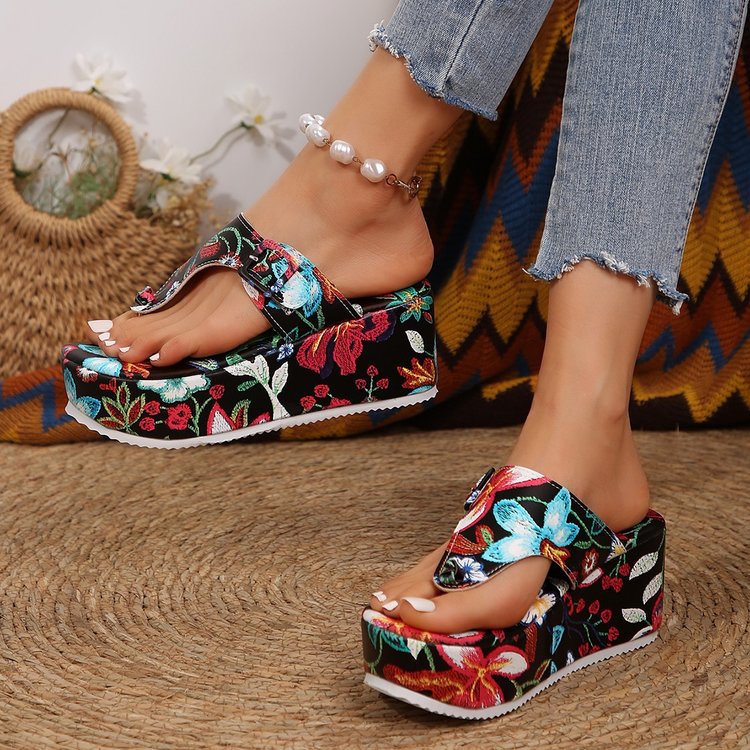 2024新型欧米夏防水台坂と一字サンダル女性カジュアルファッション
