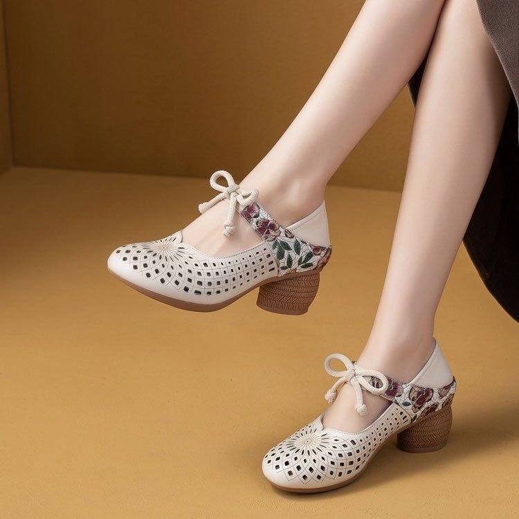 2024新作レディース透かし彫り中高年マザーズシューズ広場ダンスシューズ太さとパンプスカジュアル春夏秋シューズ