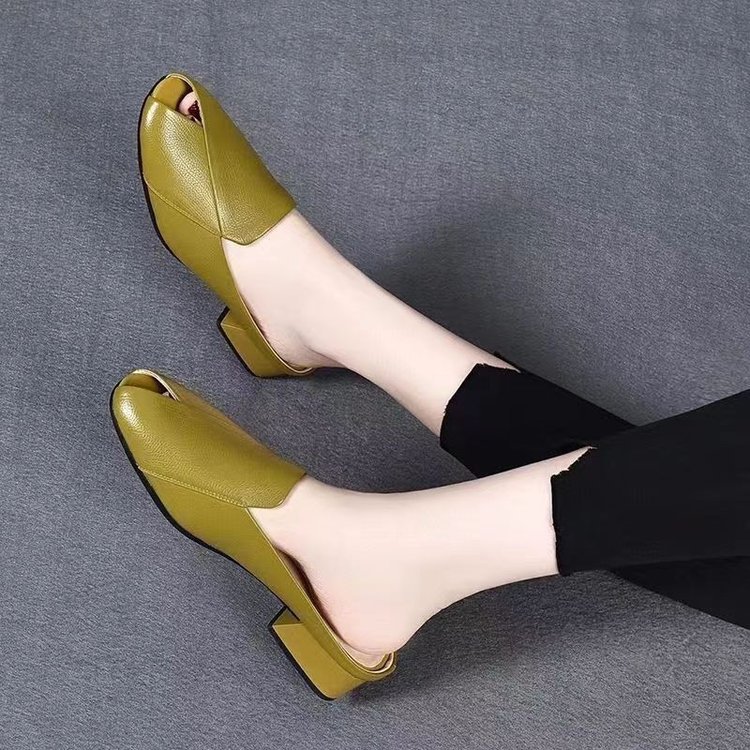 2024春夏に起爆した魚の口が太くて、外に半托の女性靴を着ている韓国版はスカートの大きいサイズの対外貿易の越境スリッパを配合します。