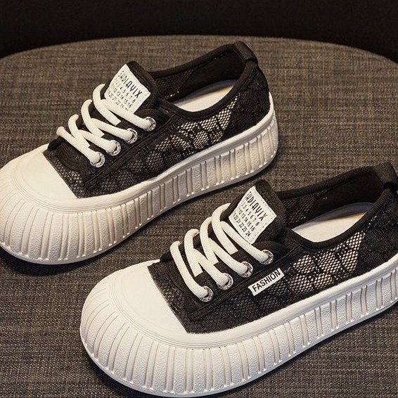 2024新型ネットの通気性の小さい白い靴の女性の爆発金は大きい頭の靴の厚い底の松の餅の漁師の靴の越境の卸売りになります。