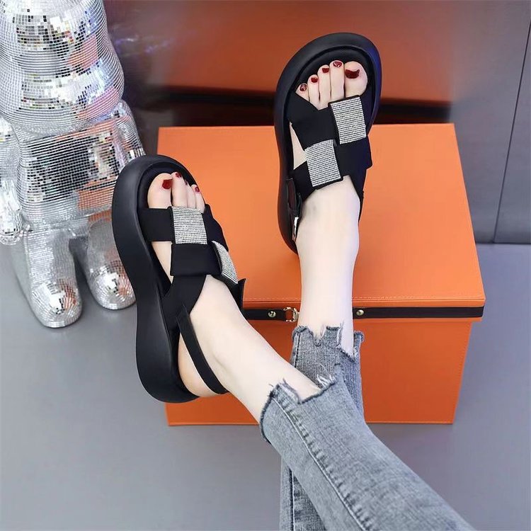 2024年夏の新型の外は一字のスリッパのビスケットの厚い底を着てスカートを配合します。
