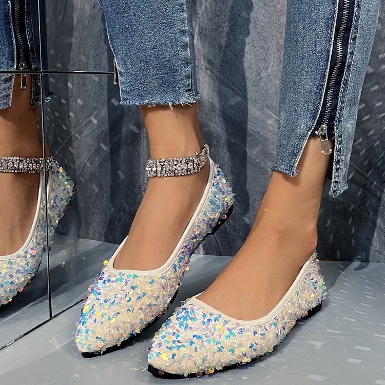 2024新型の小さい香風の明るい靴の女性の春の浅い口の先の41-43ヤードの平の靴の卸売り