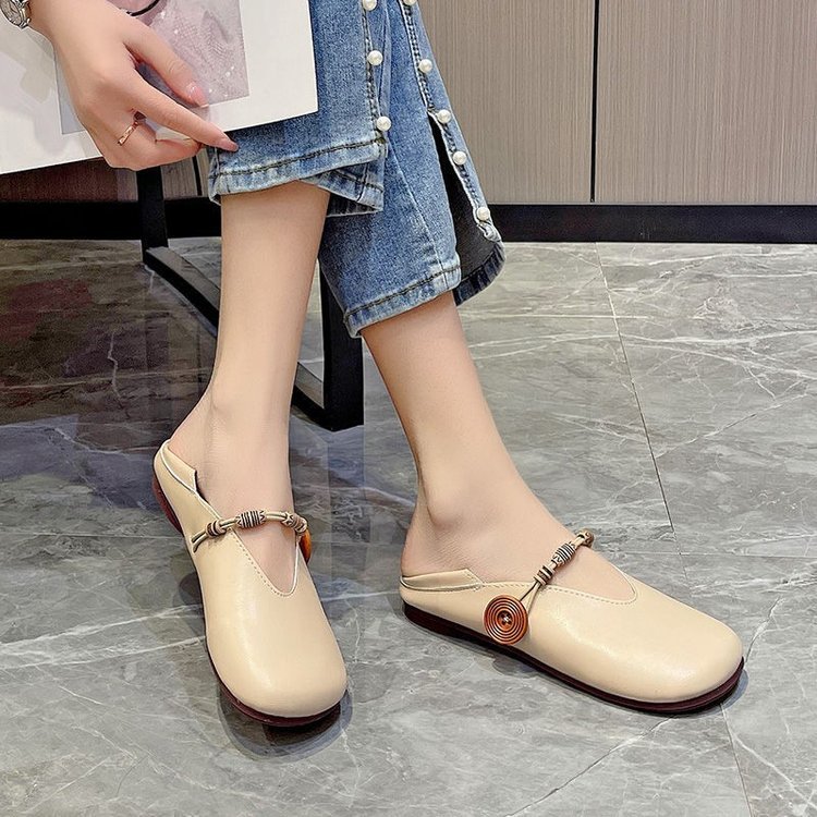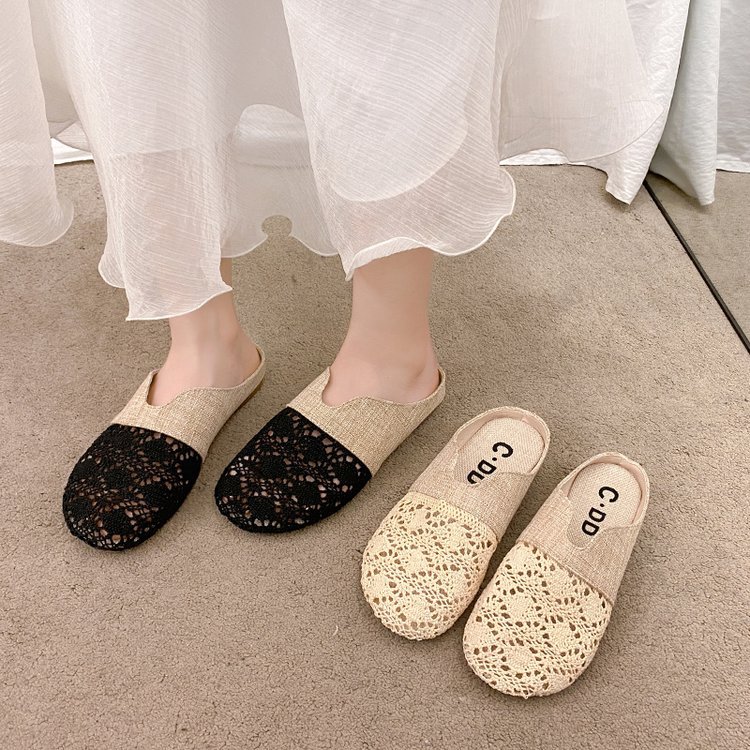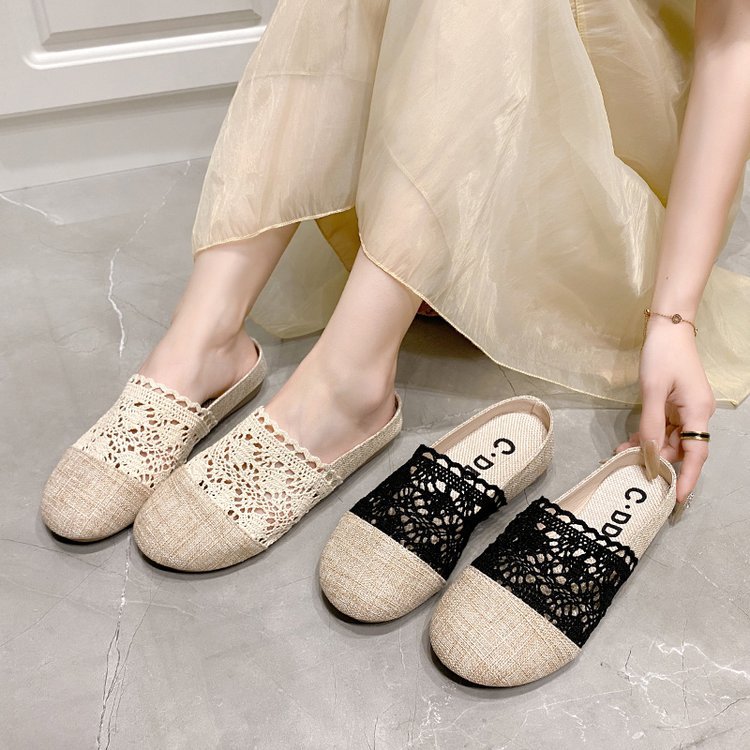 2024夏の外は丸い頭の頭の亜麻の半スリッパを着ています。