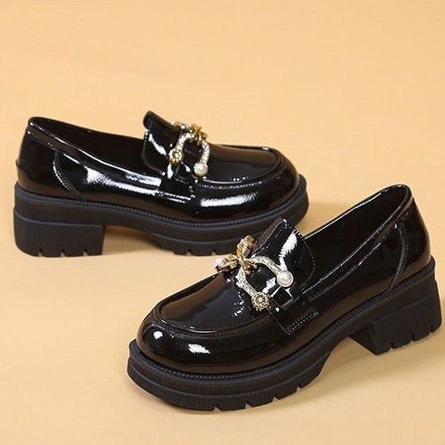 2024春秋の新型の丸い頭の英倫風の厚い底は高くなります。
