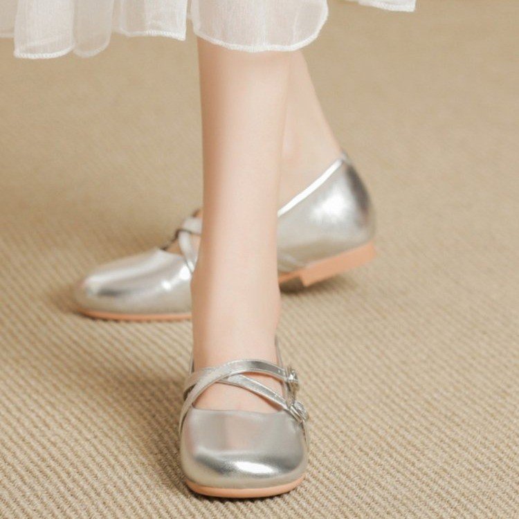 平底の柔らかい底の浅い口の交差は銀色の靴の女性の丸い頭のメアリー珍の優しい風の夜の靴のアンドロメダの豆の靴を持ちます。