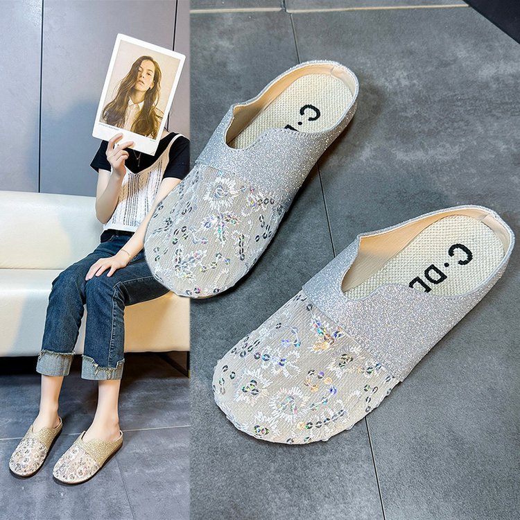2024新型春夏ファッション外着包頭レジャーネット面平底無かかと怠け者平とサンダル