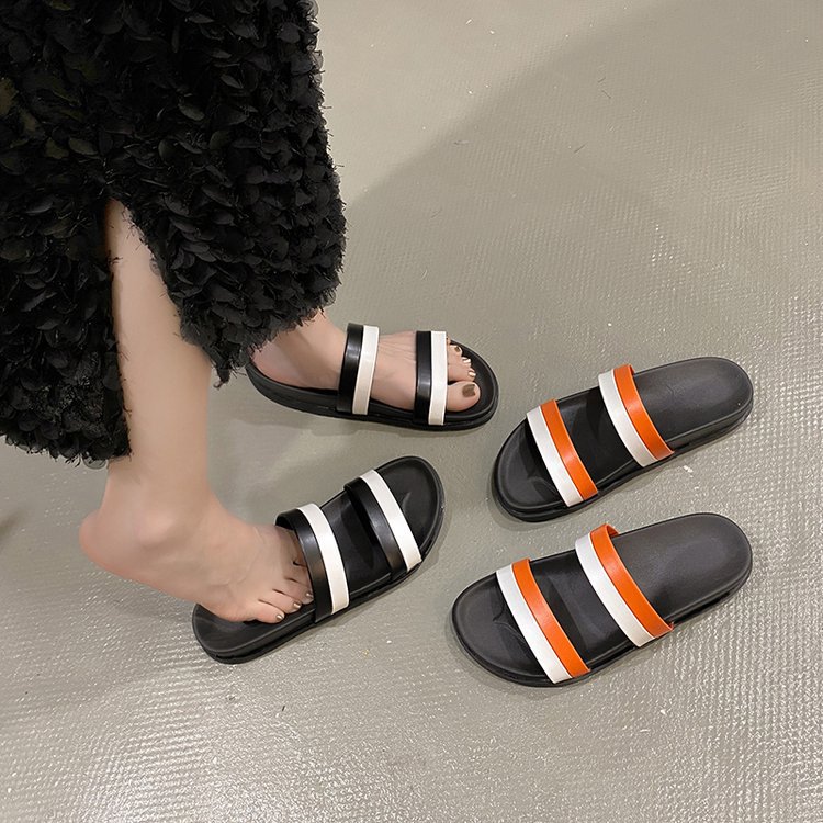 2024夏の新型国境を越えた対外貿易の大きいサイズの平底ファッションスリッパの女性は色を合わせてカジュアルな1字の足の魚の口のスリッパをかぶせます。