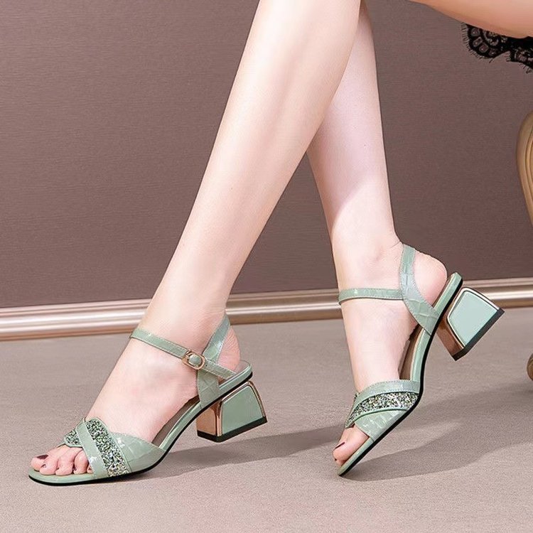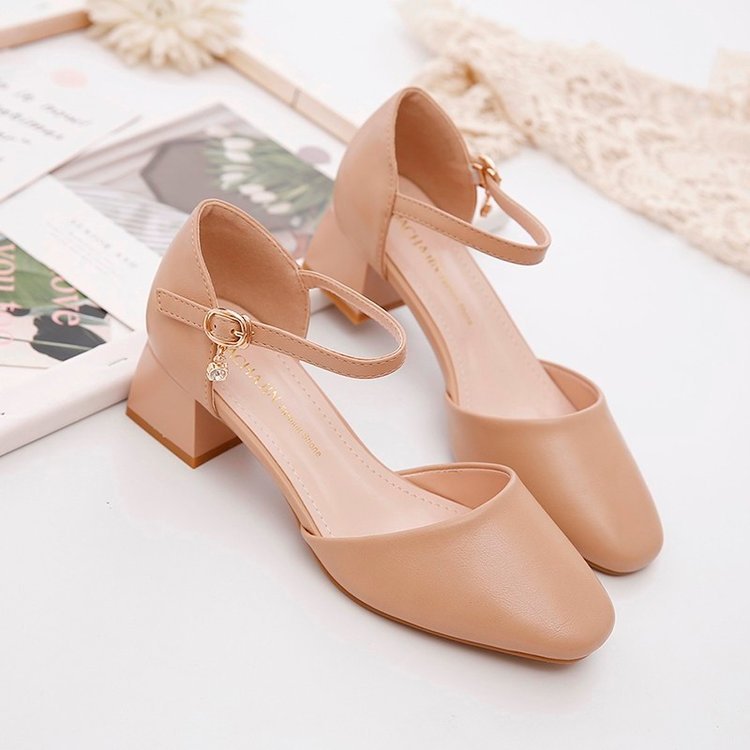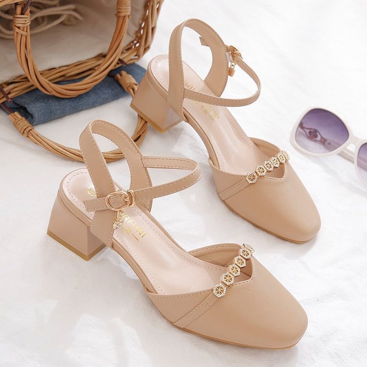 2024新型夏一字ボタン角頭包頭サンダル女性夏着スカート太ヒール中和お姫様風靴