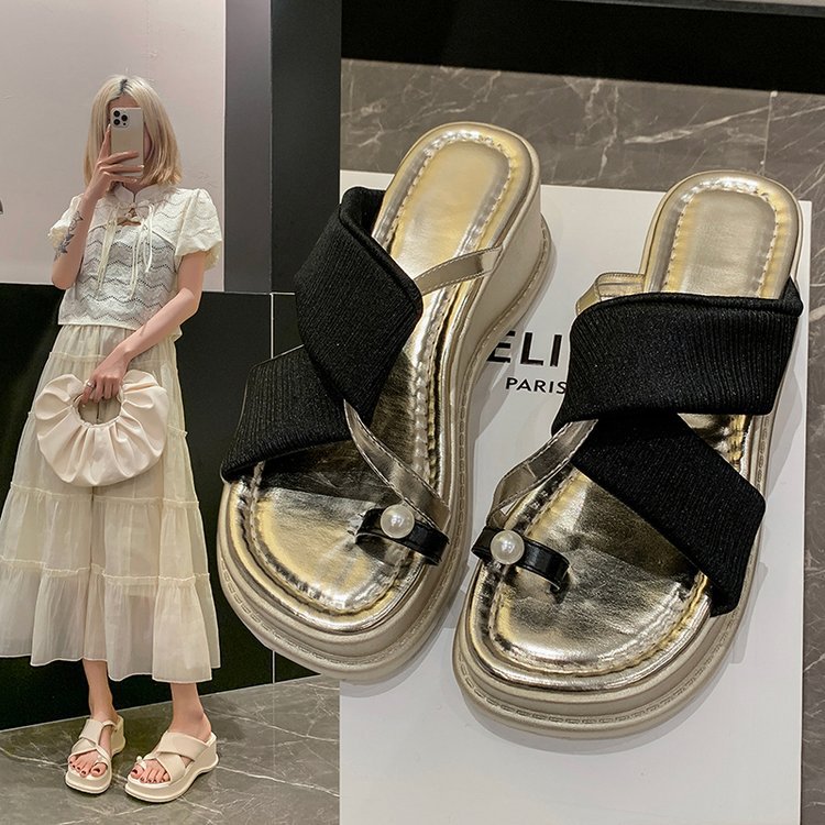 2024夏の新型アンドロメダ風松餅の厚い底の坂とスリッパの女性の夏の外は足指サンダルのファッションサンダルを着ている