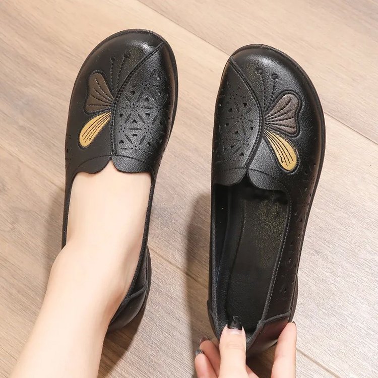 夏の柔らかい底のサンダルの透かし彫りの通気性の皮の面のお母さんの靴の中で老年の穴の項の女性の靴の平底の女性の板の靴