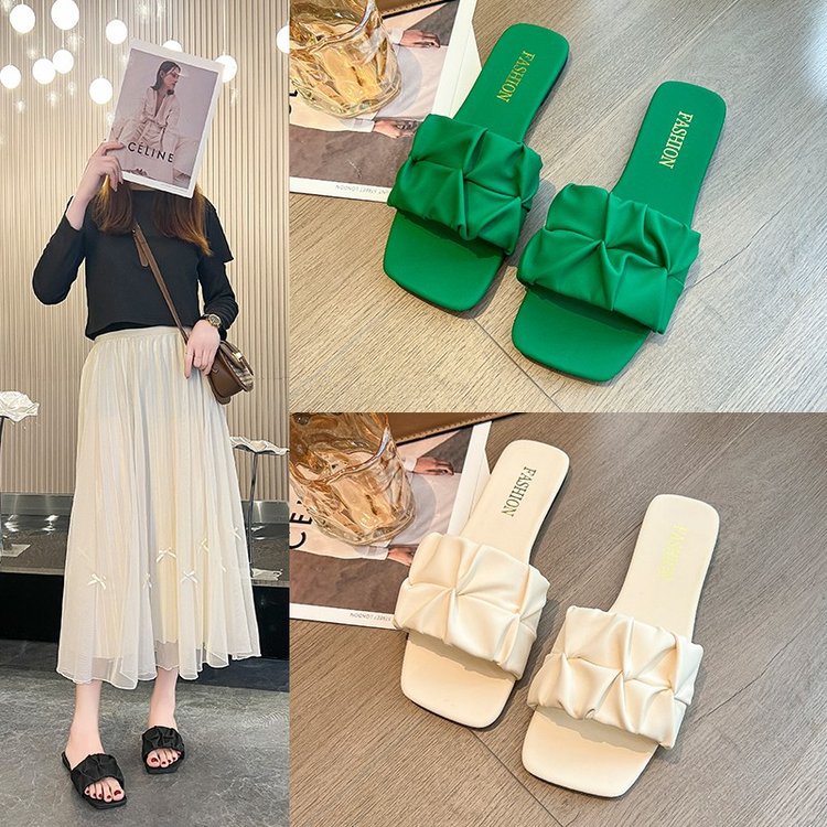 2024夏の外着韓国版百合角頭平底夜の優しいアンドロメダ風スパンコール包頭半スリッパ女