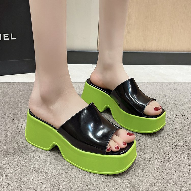 2024新型松餅カジュアル厚い底ハイヒールスリッパ女性夏外着一字スリッパ角頭ファッションサンダル