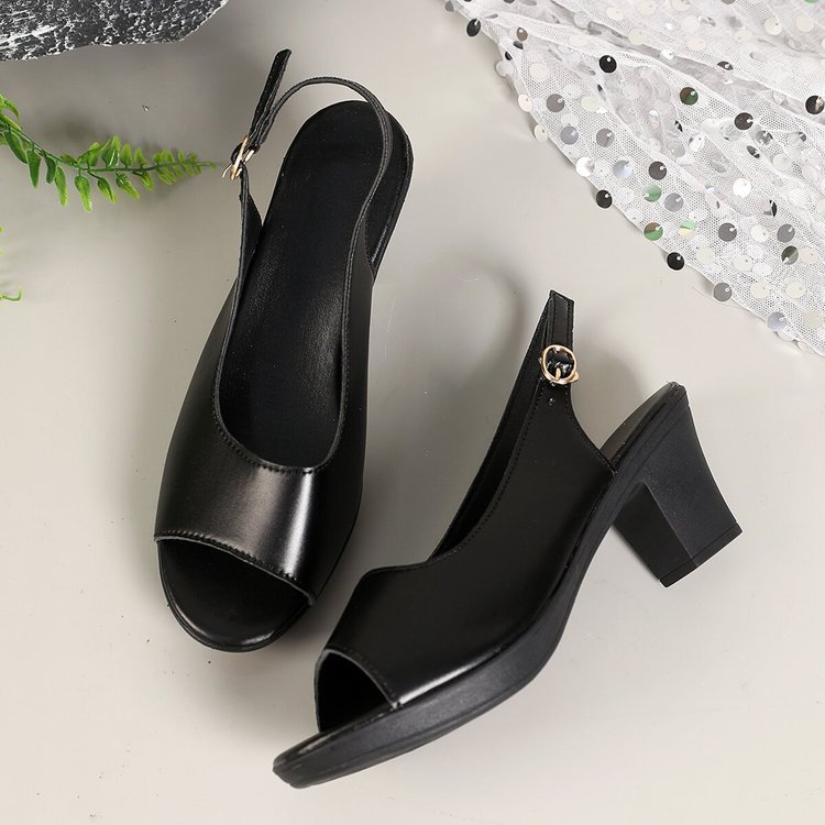 2025夏の新型ローマサンダル女性の太さと中年の母靴の魚口サンダル女性の対外貿易卸売り