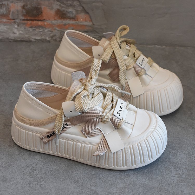 2024春の新型の爆発的な韓国版のかわいい白い靴の女性の厚い底はレジャーの怠け者の足とパンの靴を踏んでいます。