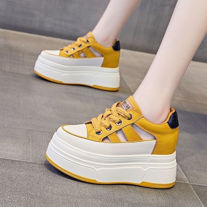 2025年夏の新作厚底インナー高さアップレディースシューズ、万能ウェッジヒールスポーツサンダル、女性用中空ホールシューズ、クロスボーダー