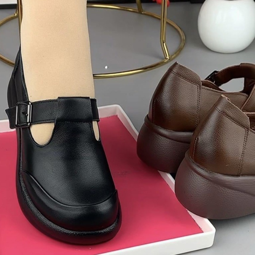 2025 春と秋の新作ソフトレザーソフトソール小さなシングルシューズワンストラップ浅い口ラウンドトゥメリージェーンシューズ女性用スカート付き