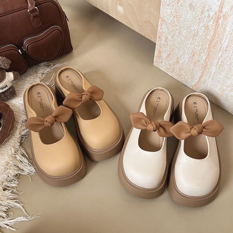 2025 新しい冬フレンチトゥハーフスリッパ女性のメリージェーンスカート厚底アウターリボンサンダル
