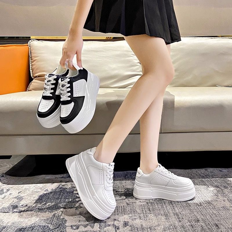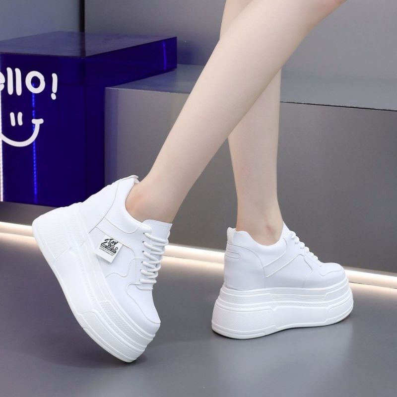 2025春夏新作小柄な人向け厚底シューズ、カジュアルで万能な厚底シューズ、女性用白靴、韓国トレンド