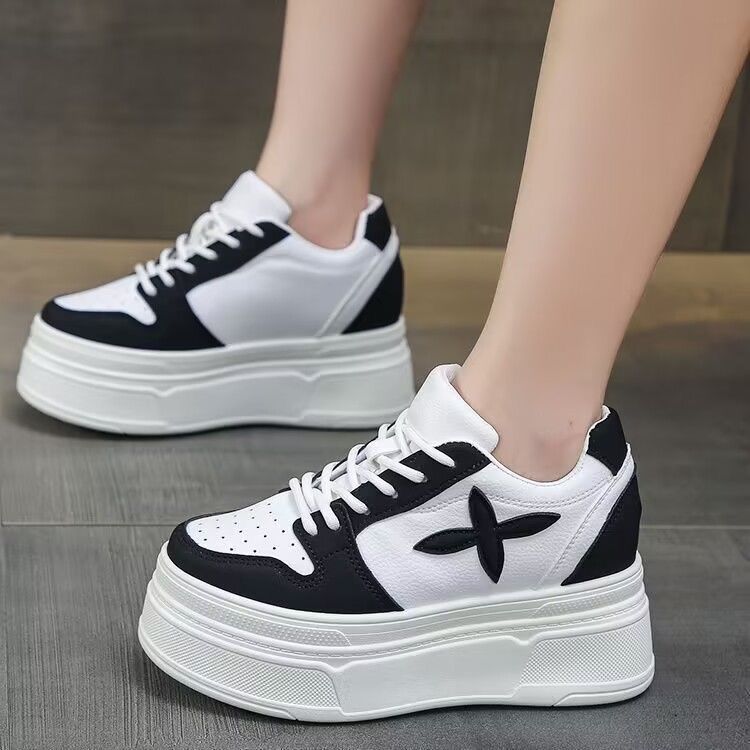 2025年新作厚底スニーカー、ハイエンドスポーツ、超人気の白い靴、女性のカジュアルな小柄な身長を伸ばすプラットフォームシューズ、クロスボーダー