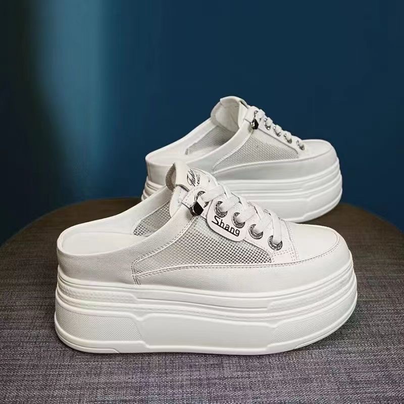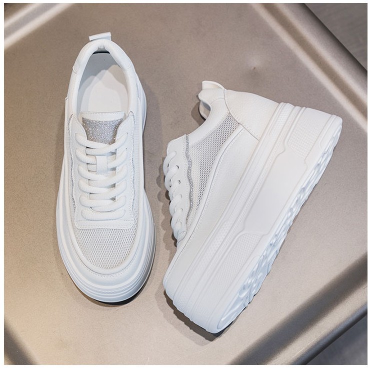 2025 ホットスタイル多用途メッシュ通気性レディースシューズ韓国スタイルインナー高さ増加白靴プラットフォームカジュアルシューズクロスボーダー卸売
