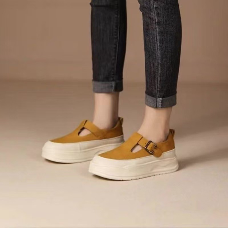 2025年クロスボーダーメリージェーンスモールレザーシューズ浅口ワンラインバックルレディースシューズラウンドトゥ多用途ソフトレザーソフトソールスモールシューズ