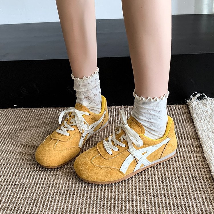 2025 新しいラウンドトゥフォレストシューズカレッジスタイルスポーツシューズ韓国スタイルキャンディーカラーカレッジスタイルカラーブロック白靴女性