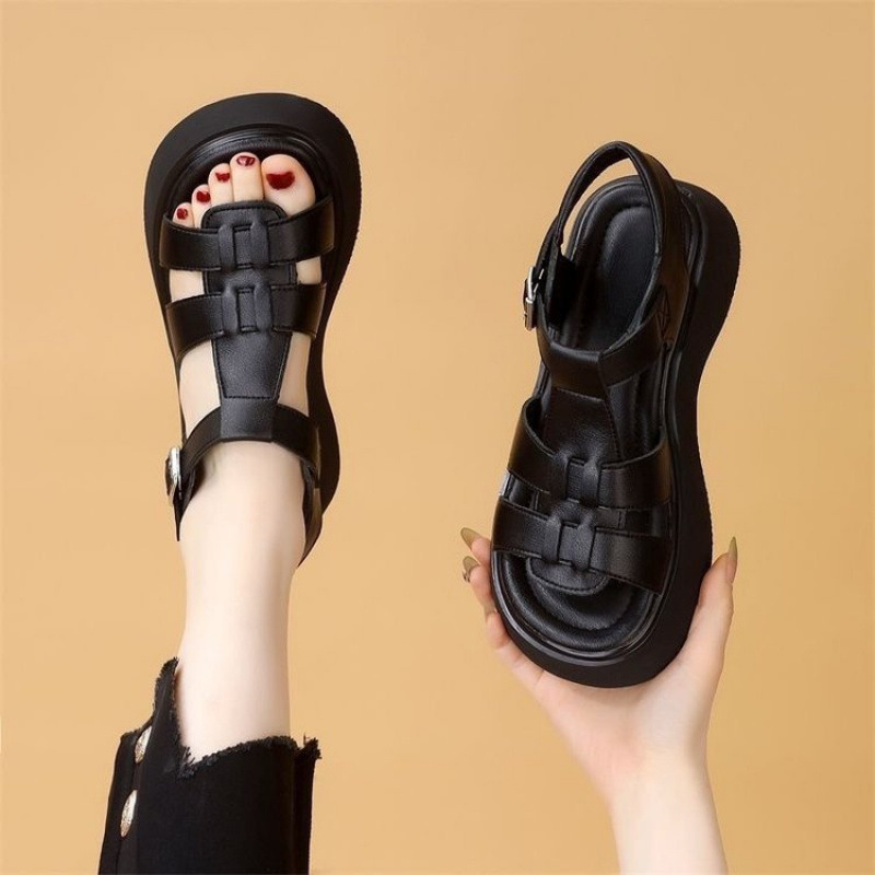 2025年夏の新作厚底インナー高さアップレディースシューズ、万能ウェッジヒールスポーツサンダル、女性用中空ホールシューズ、クロスボーダー