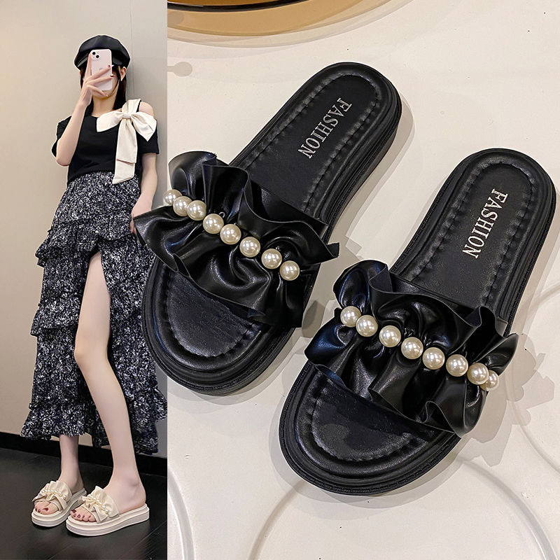 2025夏の新型アンドロメダの小香風スリッパの女性は、柔らかい底の軽い厚い底の涼しさを着て国境を越えた