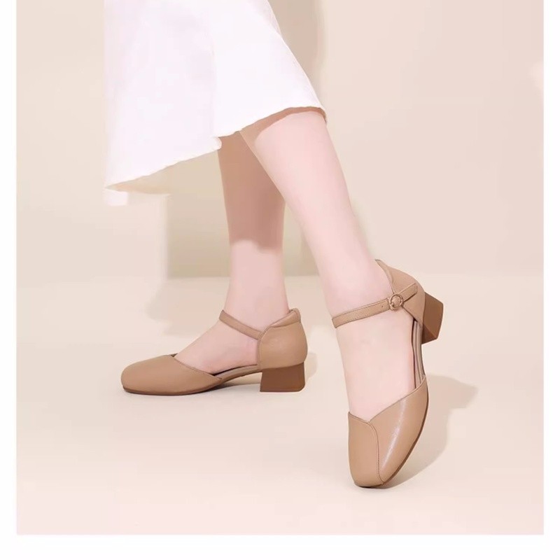2025春夏の靴の新型の気質の小さい靴の太さと一字の浅い口のメアリー珍の靴の女性はスカートの街を配合して撮影します。