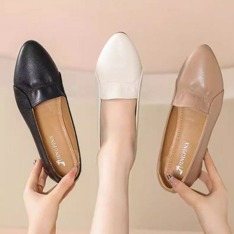 2025 春と秋の新ソフトソール英国小さな革靴女性の多用途カジュアルファッションスリッポンローファーハーフスリッパ