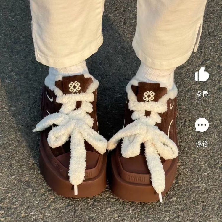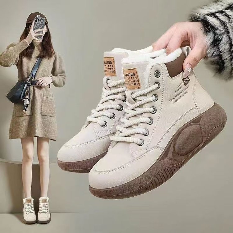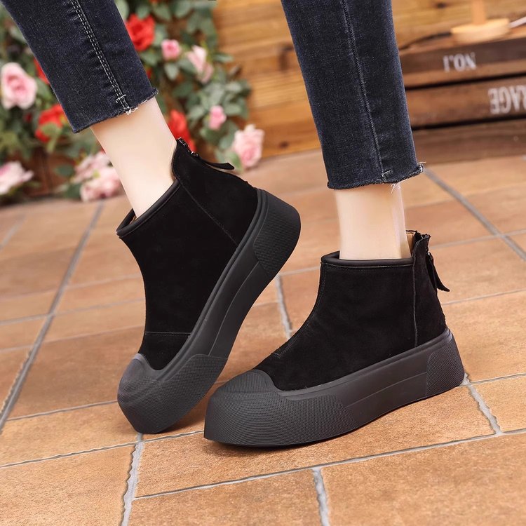 2024新型ショートブーツ女性秋冬厚い底レトロ百合高級感ベルベット保温綿靴東北雪地靴