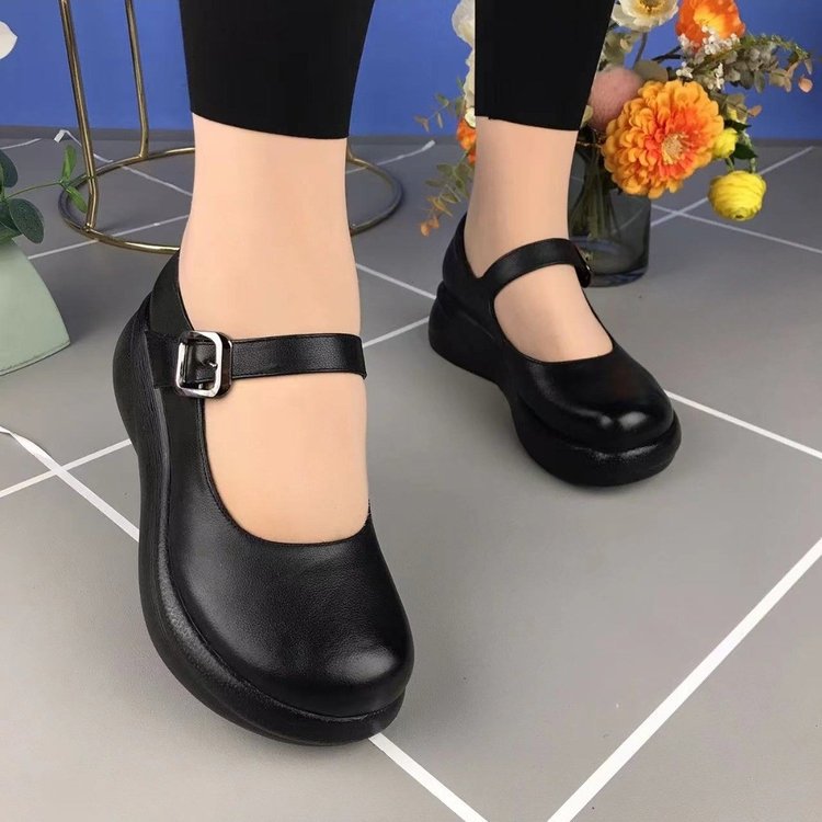 2025メアリージェーン靴ソフト底レトロ靴女性中高年豆靴丸頭靴女性靴対外貿易卸売り