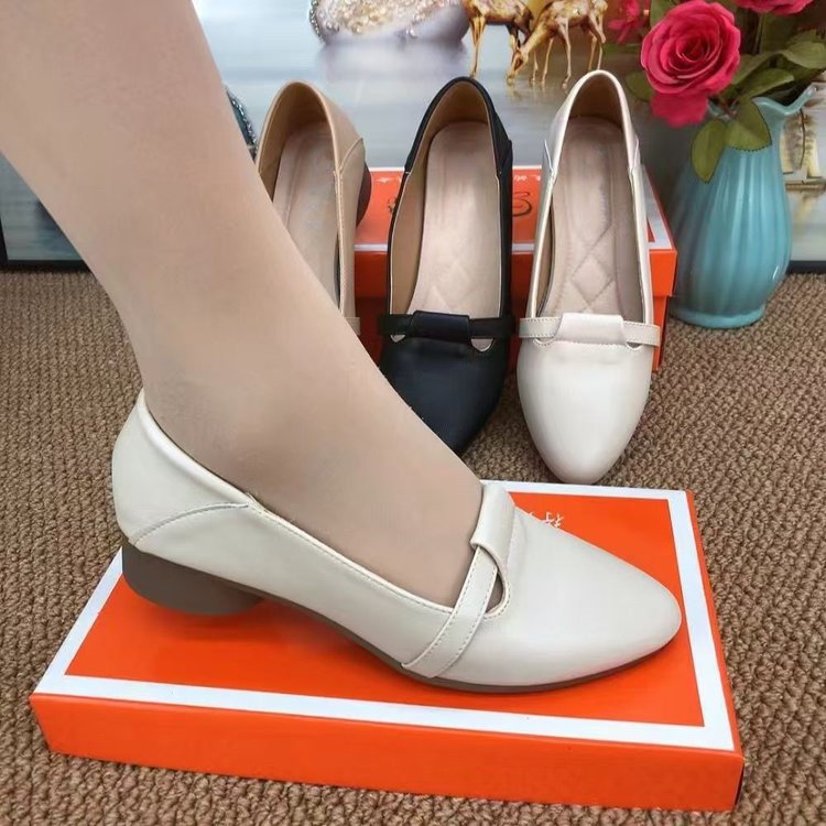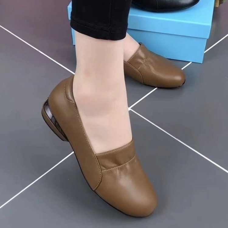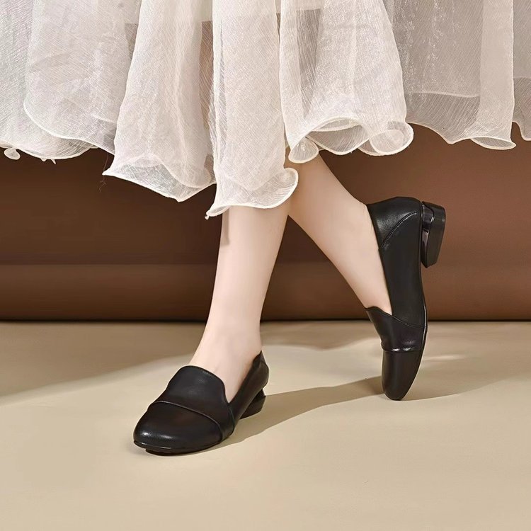 2024秋のシンプルな作業靴気質の低いヒールの丸い靴の女性の柔らかい皮の浅い靴の女性の四季の靴