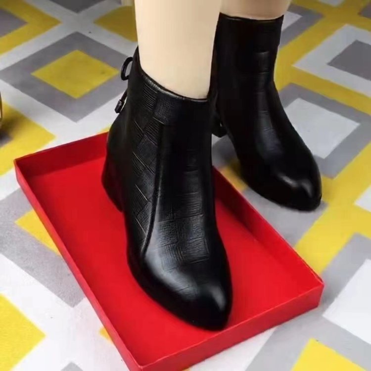 2024秋冬のマーティンブーツの太さと先の大きいサイズの側のファスナーのファッションの靴の欧米の対外貿易のショートブーツの女性の卸売り
