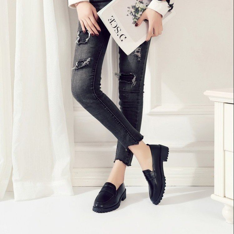 2024春秋韓国版太ヒールカジュアルシューズ学院風英倫小革靴超軟楽福靴一足が潮を越えている