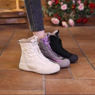 2024秋冬の新型レトロ百合雪地靴ソフト底超軽量ベルベット高助女靴クロスボーダー対外貿易