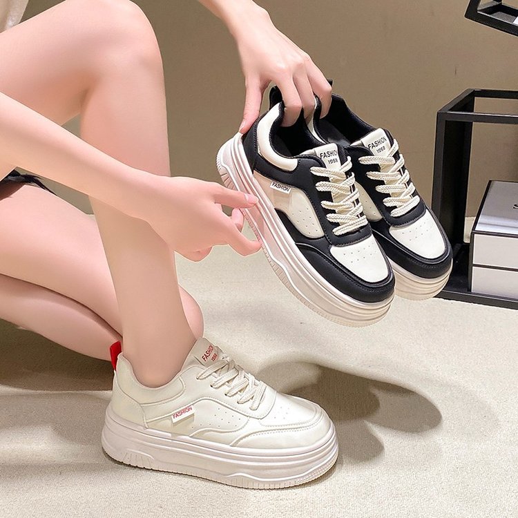 2024新型のスカートと一緒に小衆がデザインした厚い底の白い靴の女性の丸いカジュアルな女性の板靴が国境を越えている