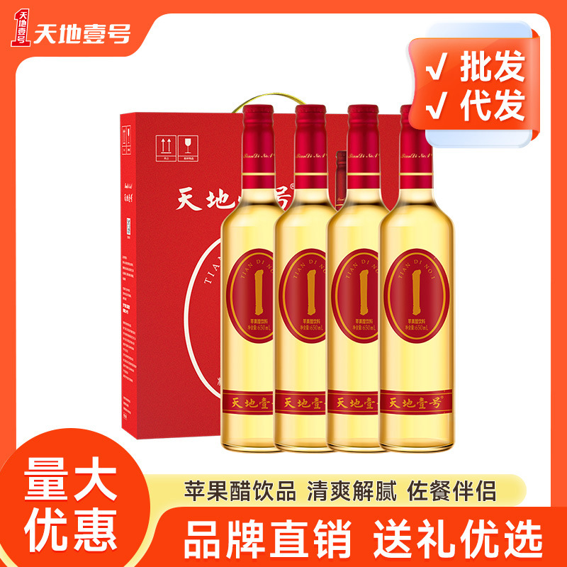 【ギフトボックス】Tiandi No.1 リンゴ酢ドリンク 650ml*4本 酸っぱくて爽やかで脂っこさを和らげ、健康的な食事とギフトに