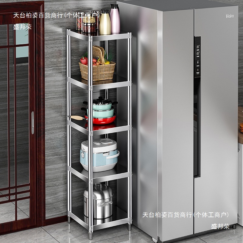 キッチンサイド冷蔵庫収納ラックサイド収納ステンレス鋼床置き多層隙間果物と野菜ラック隙間収納ラック