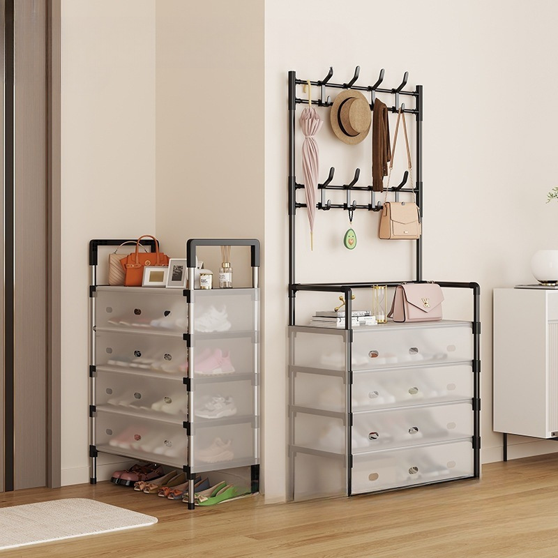 玄関のシンプルな靴ラック、家庭用屋内多層防塵、省スペース、頑丈な寮の玄関収納靴と帽子金属