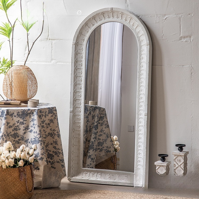 レトロアイアンホームフロアミラーミラーアーチ型インスタイルインターネットセレブ全身ミラークリームフレンチドレッシングミラー送料無料