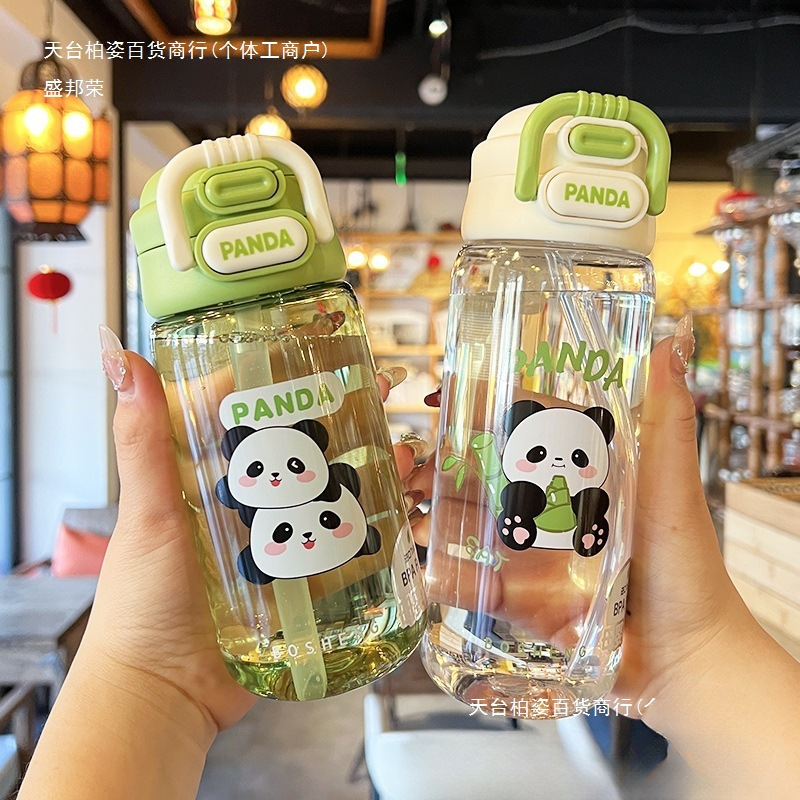 かわいいウォーターカップ子供用学校プラスチックストローカップ2025新しい夏の女の子小学生パンダカップ便利