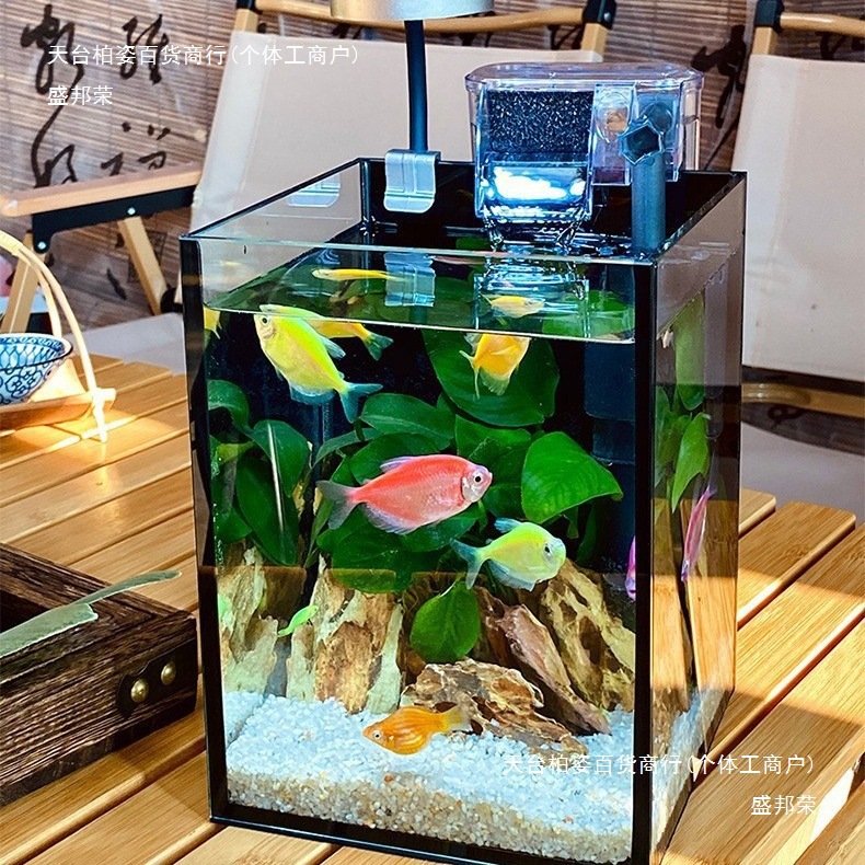 オフィスデスク、リビングルーム、超白色ガラス水槽、バケツ水槽、循環デスクトップ、厚みのあるデスク、小さな造園ガラス中国